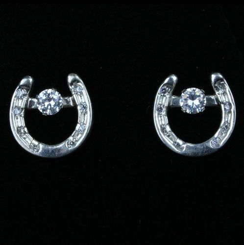 These sterling silver horseshoe jackets have a connecting bar where the complimentary Cz studs are held in the center. The earrings measure 5/16" x 5/16".